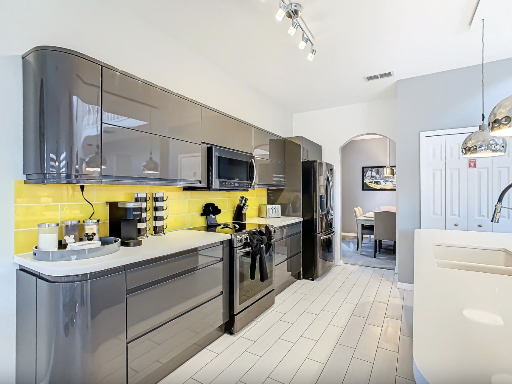 There is a fully equipped european style kitchen with glossy units, granite worktops and breakfast bar/island, a nook with a casual dining area to seat 6, which looks out over the pool, The kitchen and utility room appliances include French door style refrigerator with ice-maker and filtered water, microwave, oven, dishwasher, large washing machine and dryer.